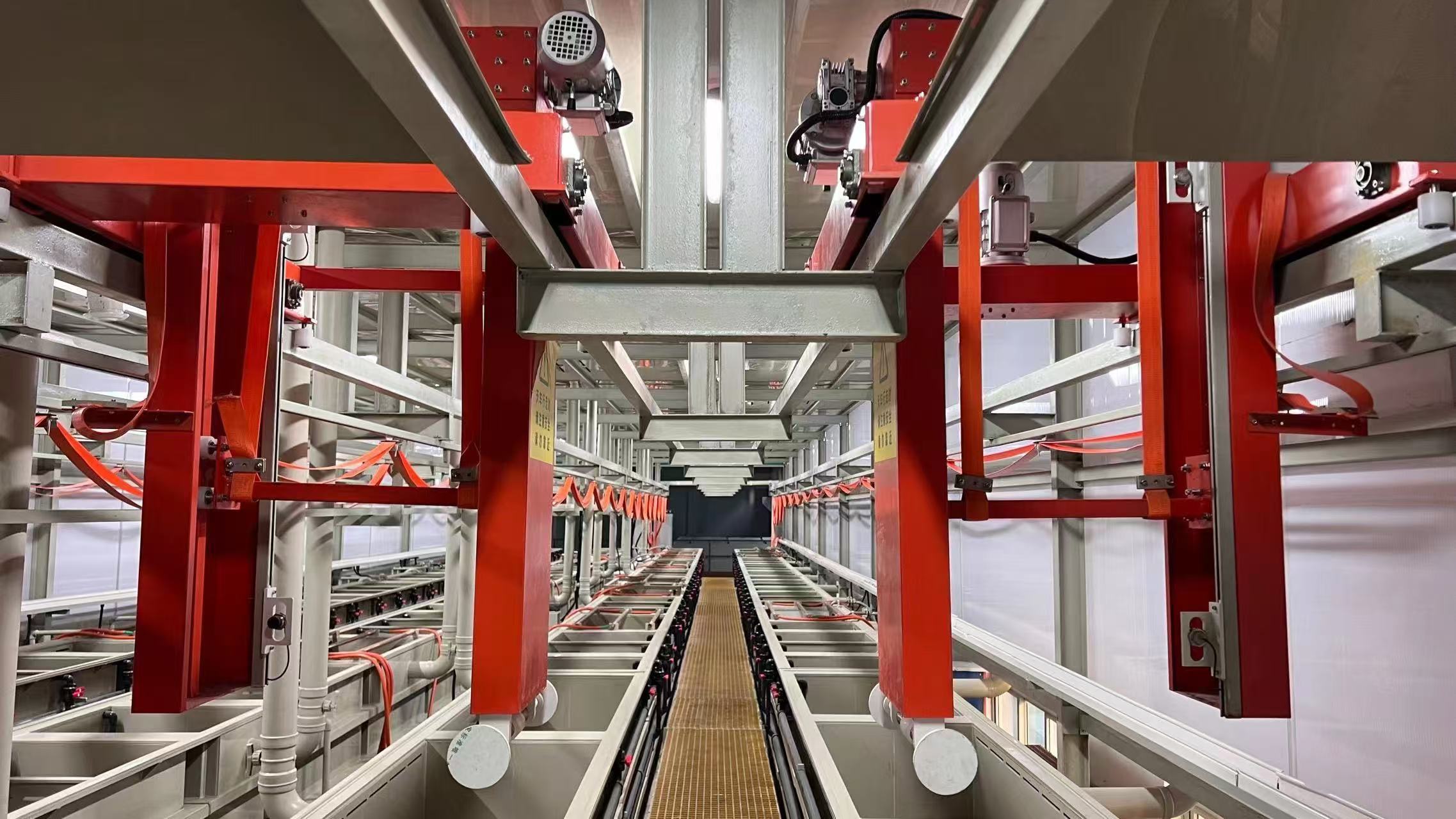 在工业电镀领域,化学镍线(化学镀镍生产线) 是针对金属或非金属基材(如 PCB、汽车零部件、航空航天构件等)进行化学镀镍处理的核心自动化设备。其核心原理是利用自催化氧化还原反应,在无需外接电源的情况下,将镍离子(Ni²⁺)还原为金属镍(Ni)并均匀沉积在基材表面,形成具有高硬度、耐腐蚀性、耐磨性的镍合金镀层(常见为镍 - 磷合金,磷含量决定镀层性能)。化学镍线并非单一设备,而是由 “前处理单元→核心化学镀镍单元→后处理单元” 及配套系统组成的连续化生产流水线,广泛应用于电子、汽车、机械、精密制造等行业。