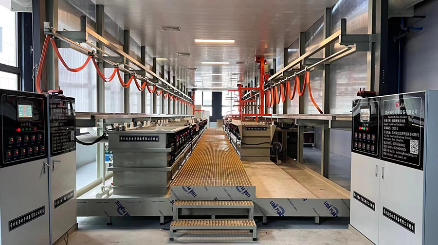 镀铜镍锡线是工业电镀设备中用于在工件表面依次镀上铜、镍、锡镀层的生产线,广泛应用于电子、汽车等行业。镀铜镍锡线主要基于电解原理。在电镀过程中,工件作为阴极,铜、镍、锡等金属板作为阳极,分别置于含有相应金属离子的电解液中。当电流通过电解液时,阳极的金属原子失去电子变成金属离子进入电解液,而电解液中的金属离子在阴极(工件)表面获得电子,还原成金属原子并沉积在工件表面,形成一层均匀的金属镀层。