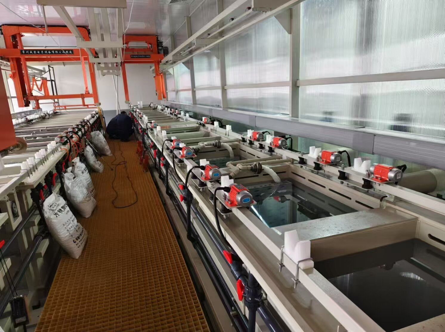 在工业电镀领域,化学镍线(化学镀镍生产线) 是针对金属或非金属基材(如 PCB、汽车零部件、航空航天构件等)进行化学镀镍处理的核心自动化设备。其核心原理是利用自催化氧化还原反应,在无需外接电源的情况下,将镍离子(Ni²⁺)还原为金属镍(Ni)并均匀沉积在基材表面,形成具有高硬度、耐腐蚀性、耐磨性的镍合金镀层(常见为镍 - 磷合金,磷含量决定镀层性能)。化学镍线并非单一设备,而是由 “前处理单元→核心化学镀镍单元→后处理单元” 及配套系统组成的连续化生产流水线,广泛应用于电子、汽车、机械、精密制造等行业。
